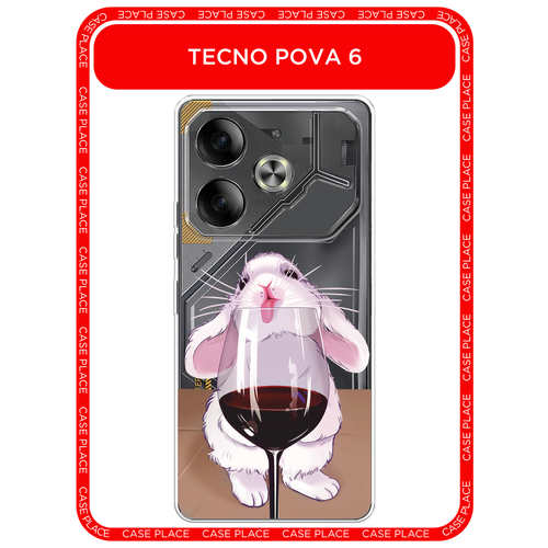 Чехол на Tecno Pova 6 / Текно Пова 6 с принтом Кролик облизывает бокал, прозрачный