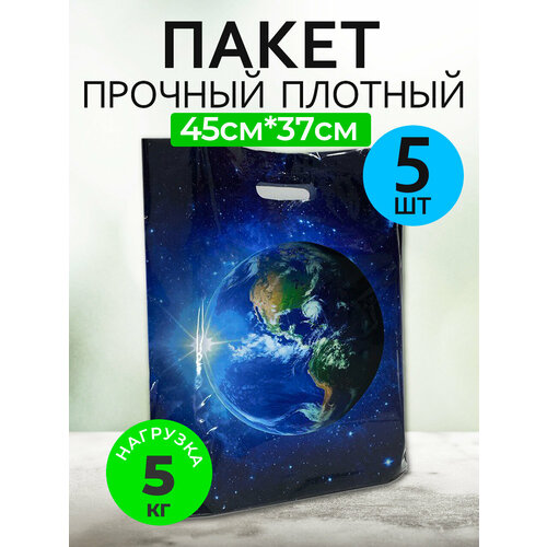 Пакет 5 штук полиэтиленовый подарочный ПВД синий космос планета земля с усиленными ручками