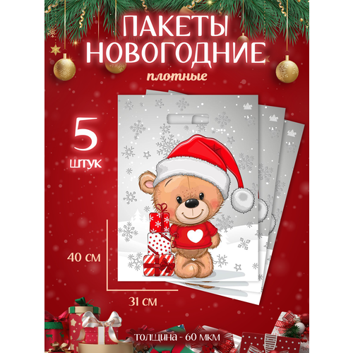 Пакет подарочный набор 5 шт новогодний в детский садик Мишка с подарками