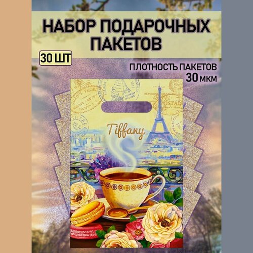 Подарочный пакет "Тиффани" с прорубной ручкой 20*30, 30 штук
