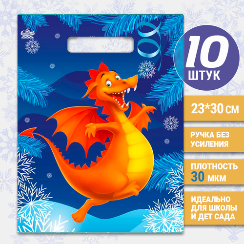 Пакет подарочный полиэтиленовый маленький ПВД с ручками новогодний детский с днем рождения дракон