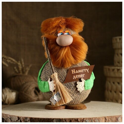 Оберег "Домовой Николаша", с метлой, намету денег, 21 см, микс