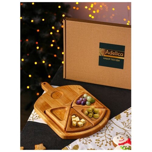 Adelica Подарочный набор посуды Adelica «Сырная мозайка», доска разделочная 35×22 см, менажницы 4 шт, 12,5×9 см, берёза