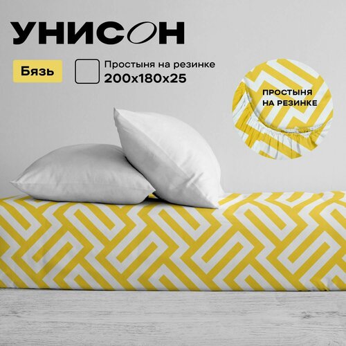 Унисон Простыня на резинке, Бязь, Евро, 180х200 см, высота 25 см, резинка по углам / простынь Geometry 27241-1