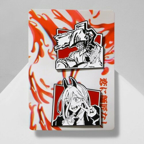 Набор значков (2шт) "Япония" магические парни, цветной в чёрном металле