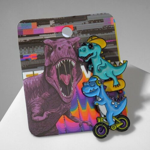 Queen fair Набор значков (2 шт.) "Динозаврики", цветной в чёрном металле