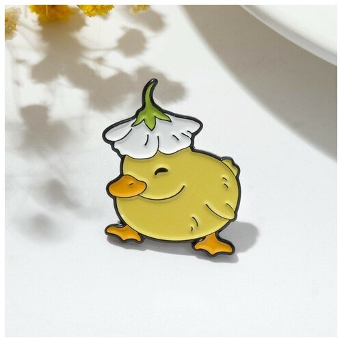 Значок "Утёнок" с цветком, цветной в чёрном металле