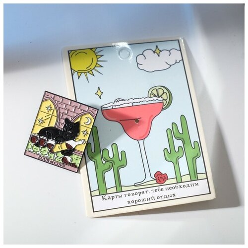 Значок «Таро» четверка кубков, цветной в чёрном металле 9423651