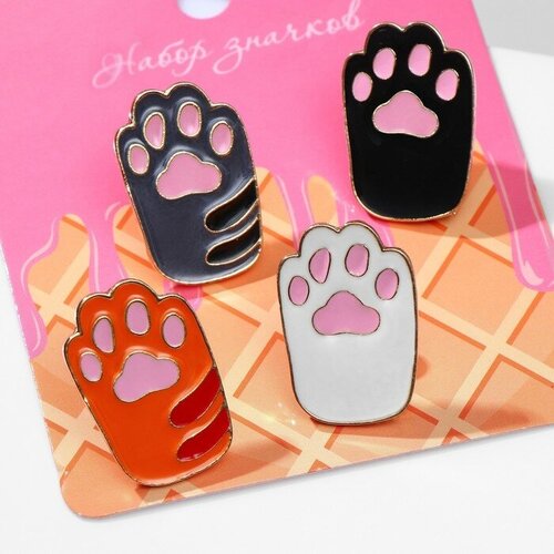 Набор значков (4шт) "Лапки" кошачьи, цветные