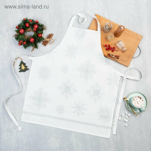 Фартук новогодний Серебряные снежинки 60х65 см, 100%хл, 190г/м2