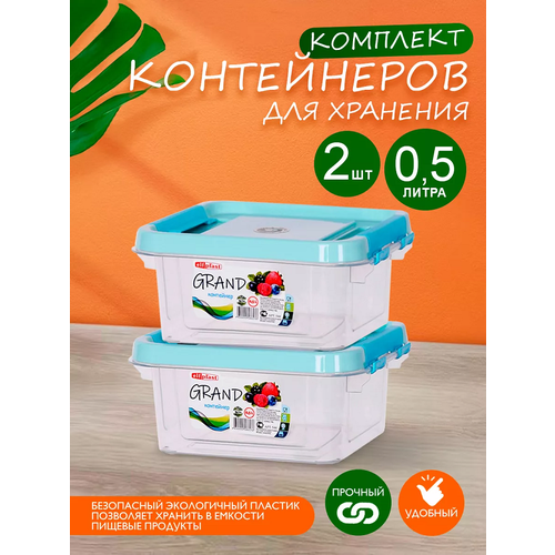 Контейнер для хранения пластиковый с крышкой 0,5 л 2шт