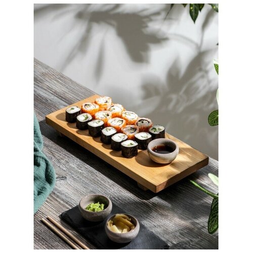 Блюдо для подачи на ножках Adelica «Евразия», для суши и роллов, 35×15×5,5 см, массив берёзы