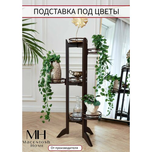 металл, деревоПодставка под цветы универсальная с металлическим кашпо. Изготовленная из массива дерева, кашпо крашенный металл. Металлические полки (кашпо), с антикоррозийным покрытием, устойчивы к влаге. Стильный дизайн, компактная и функциональная цветочница впишется в любой интерьер. Наша цветочница подойдет для гостиной, спальни, детской, кухни, прихожей, лоджии, террасы, сделает Ваш интерьер более уютным и красивым. Отличное качество за минимальную цену. Каждая полка выдерживает до 30кг. Легкая и быстрая сборка, с подробной инструкцией, с которой справится даже ребенок. Подставка станет идеальным подарком маме, бабушке, супруге, сестре, коллеге на день рождение, 8 марта, новый год, день Святого Валентина, прекрасный подарок на новоселье. Размеры цветочницы: ширина 370мм, высота 300мм, диаметр полок 320 мм, высота 55мм. Вес 1,6 кг.