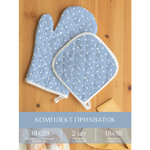 Комплект кухонный рогожка (прихватка 18х18, прихватка-рукавица 18х28) "Унисон" рис 33002-3 Love