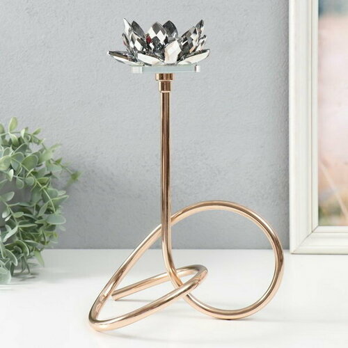 Подсвечник металл, акрил на 1 свечу "Чёрный лотос. Завиток" d=4 см золото 19х29 см