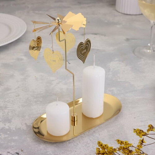 Подсвечник "Карусель с сердцами", золотая, металл, 8.5 x 18 см