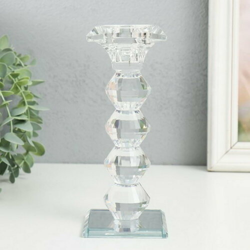 Подсвечник стекло на 1 свечу "Бефана с 4 подъемами" прозрачный d=2.2 и 3.5 см 6х6х18 см