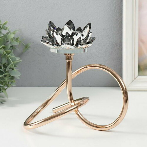 Подсвечник металл, акрил на 1 свечу "Чёрный лотос. Завиток" d=4 см золото 19х19 см