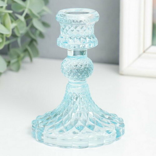 Подсвечник стекло на 1 свечу "Женева" d-2.2 см 10.5х7.7х7.7 см