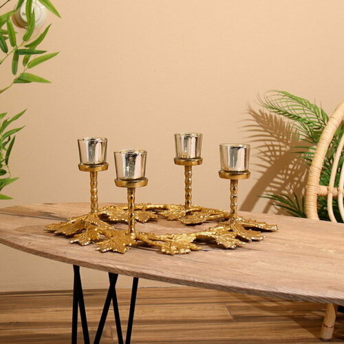 Подсвечник на 4 свечи "Кленовые листья" алюминий 46х46х18 см