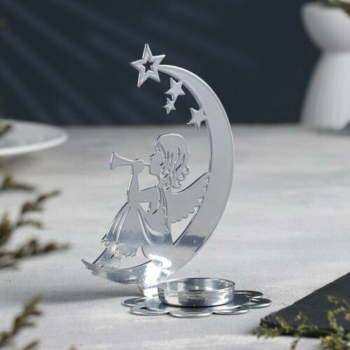 Подсвечник "Луна" металл на одну свечу, 7.1х10.8х14.7 см, хром