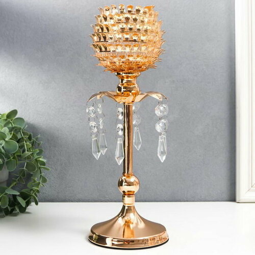 Подсвечник металл на 1 свечу "Цветок чешуйчатый" золото 32х11х11 см