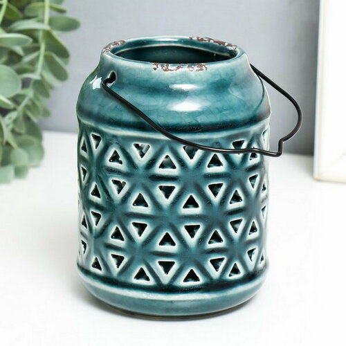 Подсвечник керамика на 1 свечу "Фонарь. Ромбы" зелёный 9х9х12 см