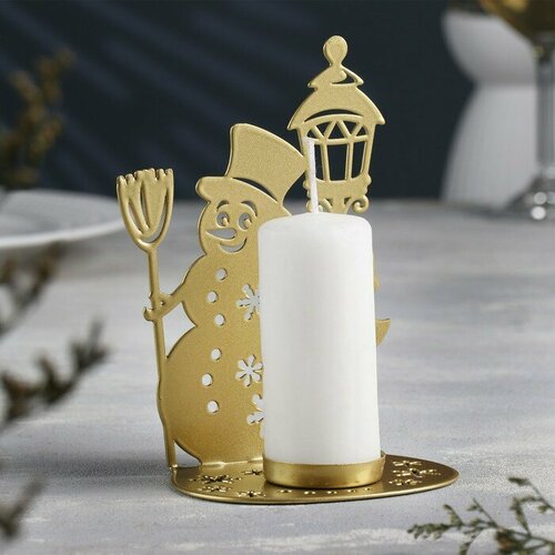 Подсвечник "Снеговик" металл на одну свечу, 7,5х10,7х15 см, золотой 9928302