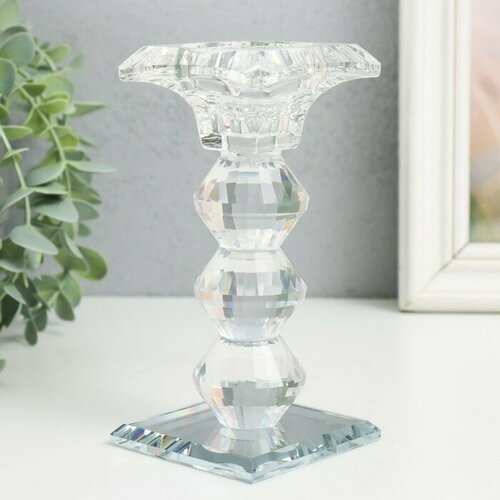Подсвечник стекло на 1 свечу "Бефана с 3 подъемами" прозрачный d=2,2 и 3,5 см 6х6х14 см 9702837
