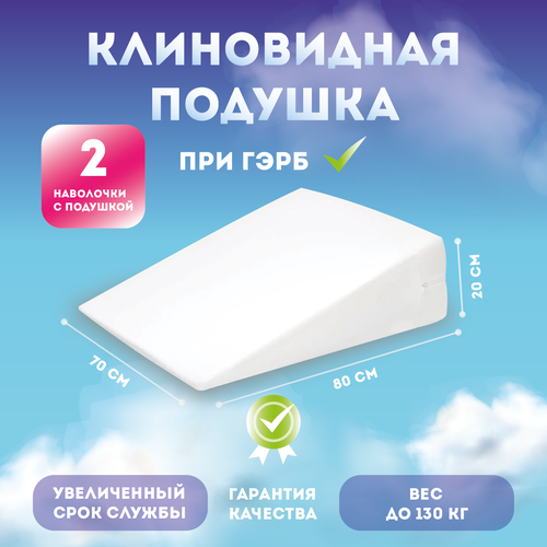 Клиновидная подушка YOKA HOME для сна, при ГЭРБ, 80x70x20 см
