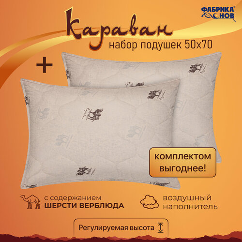 Подушка Фабрика снов 50x70, набор 2шт, верблюжья, стеганая, на молнии