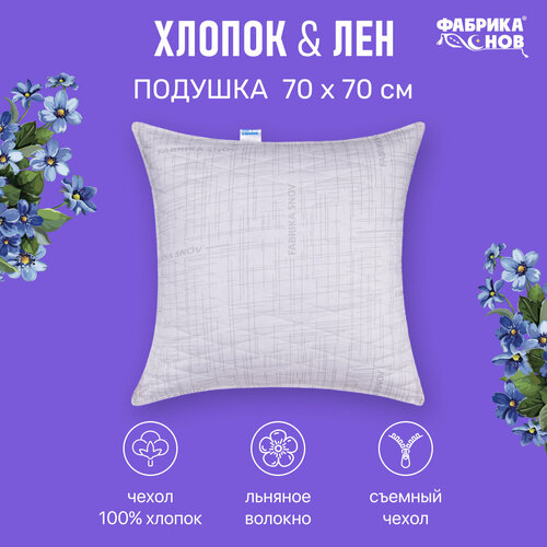Подушка Хлопок&Лён 70 x 70, с волокнами льна, лебяжий пух, стеганая