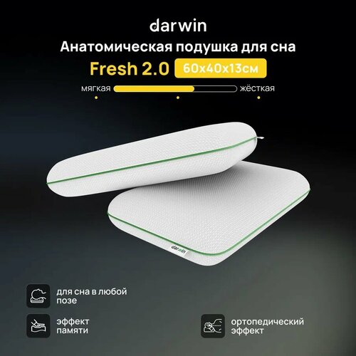 Подушка ортопедическая для сна Darwin Fresh 2.0 c эффектом памяти, анатомическая, 40х60 см, высота 13 см