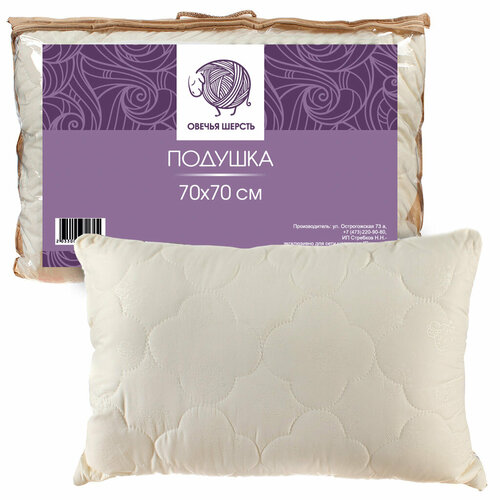 Подушка 70 х 70 см, Овечья шерсть, Эффект персика, чехол микрофибра, Selena