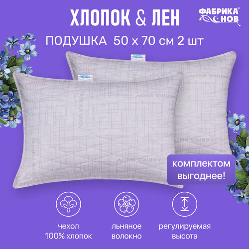 Подушки Хлопок&Лён 50 x 70 набор 2шт, с волокнами льна, лебяжий пух, стеганая