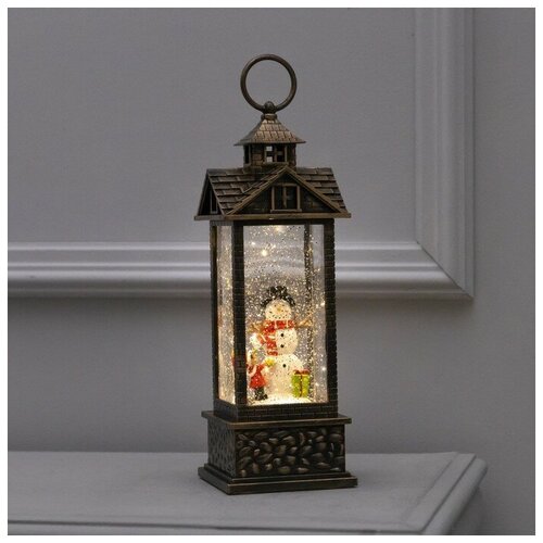 Новогодний декоративный фонарик с подсветкой и снегом | LED-Светильник в ретро-стиле "Снеговичок", 13 см 13х5,5х5,5 см Под бронзу