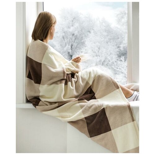 Плед флисовый "Клетка бежевая/коричневая" 150х200