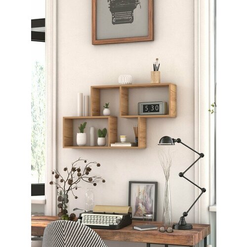 Книжная полка на стену, деревянная, открытая, навесная, для книг, подвесная, узкая, Rick Wood, цвет Сонома