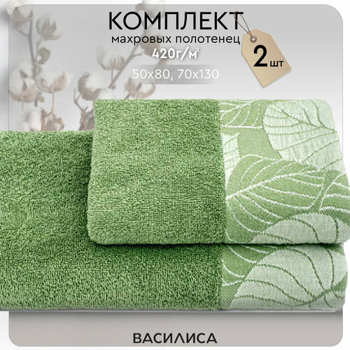 Набор махровых полотенец Василиса Версаль 50х80, 70х130, Зеленый, 4шт