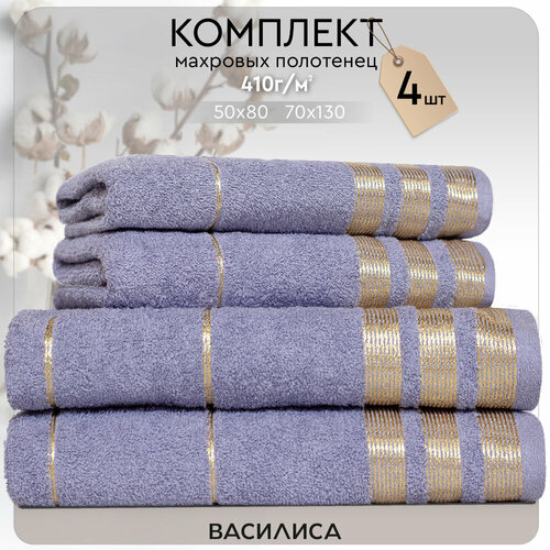 Набор махровых полотенец Василиса Версаль 50х80, 70х130, Сиреневый, 4шт