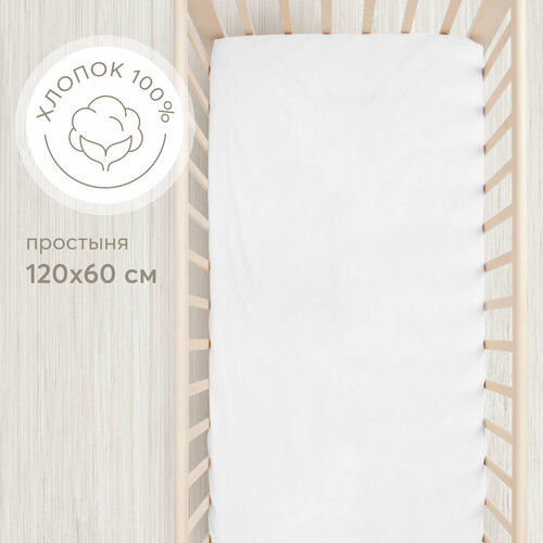 87537, Простыня 120х60 Happy Baby на резинке, в детскую кроватку, для кроватки mirra, 100% хлопок, трикотаж, белая