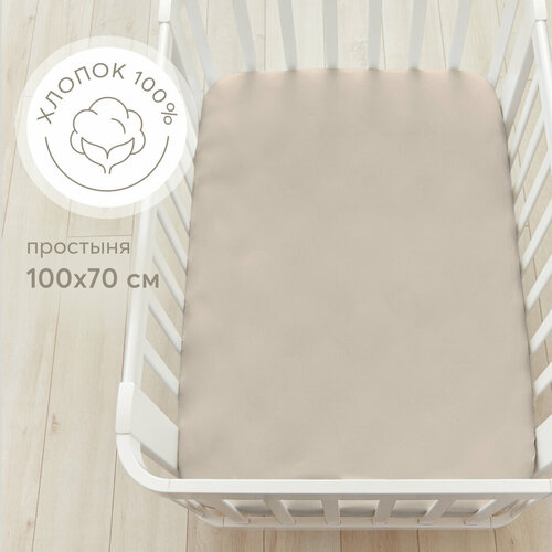 87543, Простыня на резинке Happy Baby, постельное белье детское, простынь на резинке в кроватку, размер 100х70, кремовая