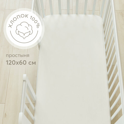 87537, Простынь на резинке детская Happy Baby, простыня для кроватки mirra, 100% хлопок, трикотаж, 120х60 см, молочная
