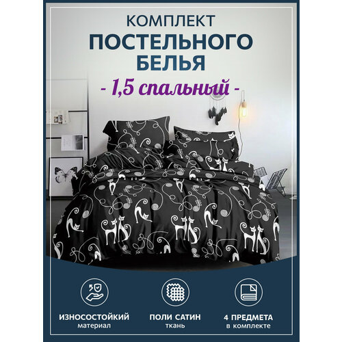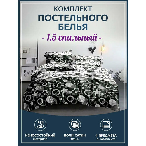 Постель детская 1.5 односпальное спальное односпальное комплект 1.5 спальный Бояртекс ивановский текстиль поли сатин наволочки черный белый