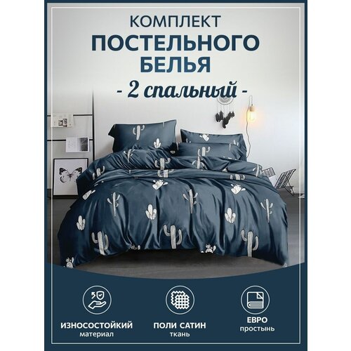 Постель детская 2 х спальное комплект детям Бояртекс ивановский текстиль для дома набор постельное кактусы, синий/белый