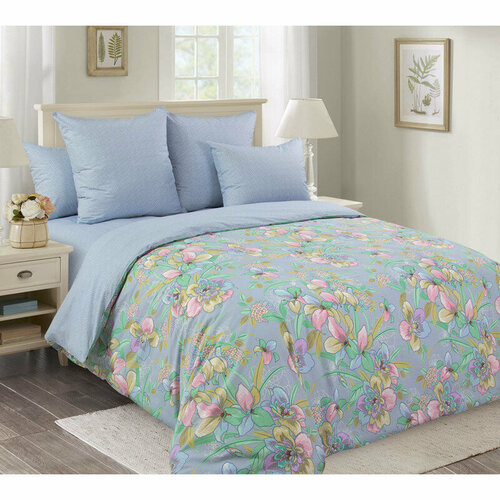 Постельное белье 1.5 спальное "Лидер Дом", поплин, 70х70, хлопок 100%, синее