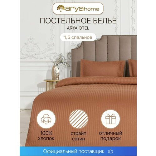 Постельное белье комплект Arya Отель 1.5 спальное страйп - сатин Коричневый
