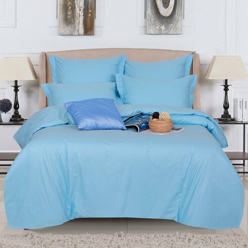 Постельное белье Евро 200x220 Simple Living Eva 2 спальный комплект из сатина, Cветло-голубой