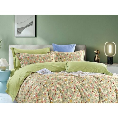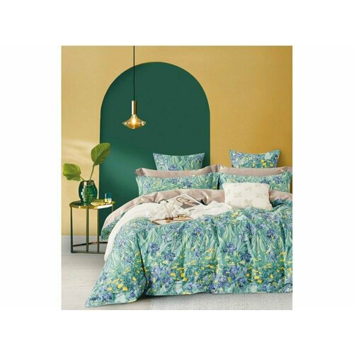 Постельное белье Евро 200x220 Simple Living Hawaii 2 спальный комплект из сатина, Зеленый