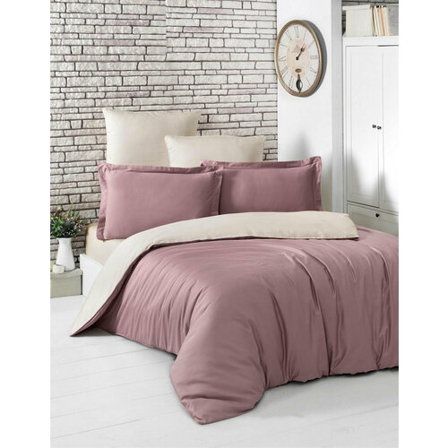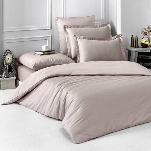 Сатиновый двухсторонний комплект белья Loft пудра-бежевый Karna (пудра-бежевый), 1,5 спальный (наволочки 50х70 и 70х70)